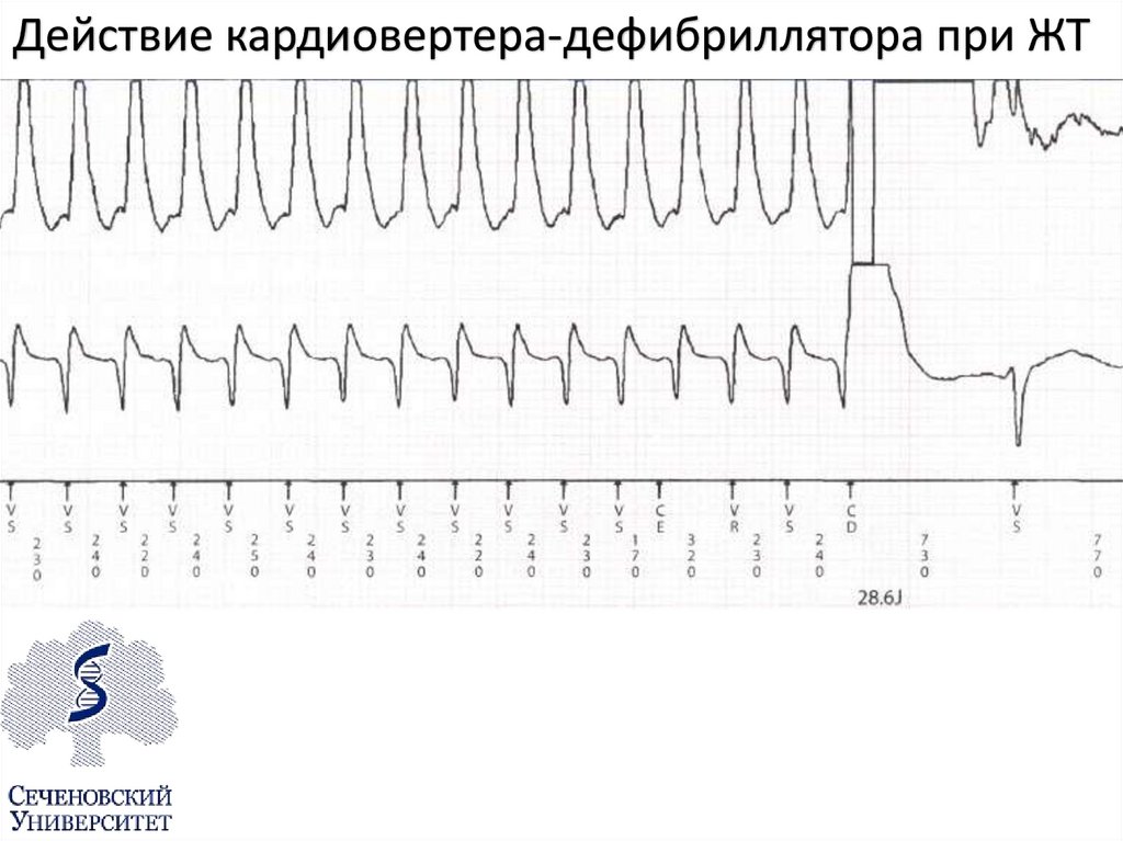 Действие кардиовертера-дефибриллятора при ЖТ39.