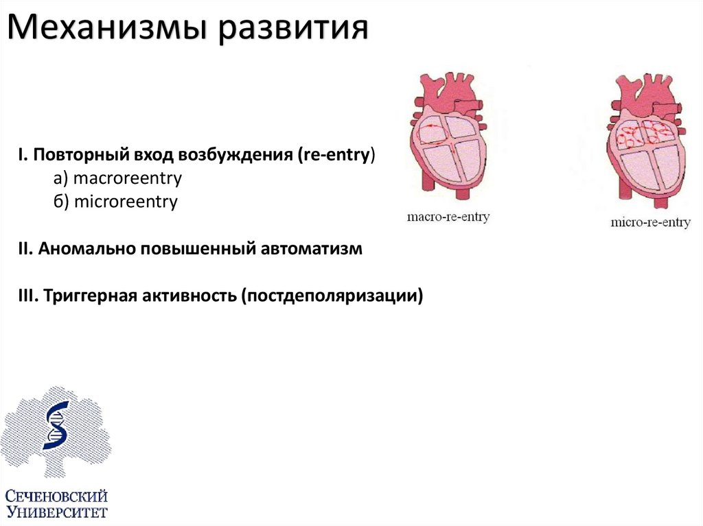 Механизмы развитияI. Повторный вход возбуждения (re-entry)