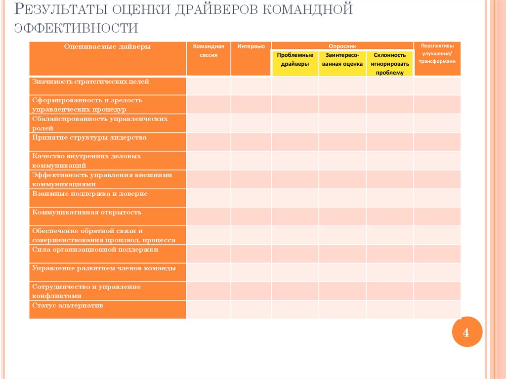 РЕЗУЛЬТАТЫ ОЦЕНКИ ДРАЙВЕРОВ КОМАНДНОЙЭФФЕКТИВНОСТИ