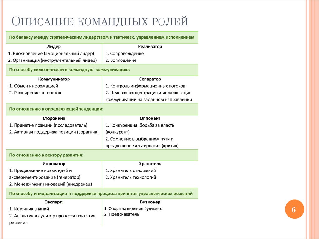 КОМАНДНЫЕ РОЛИ ЯДРА УПРАВЛЕНЧЕСКОЙКОМАНДЫ