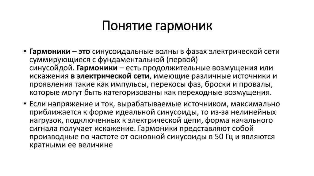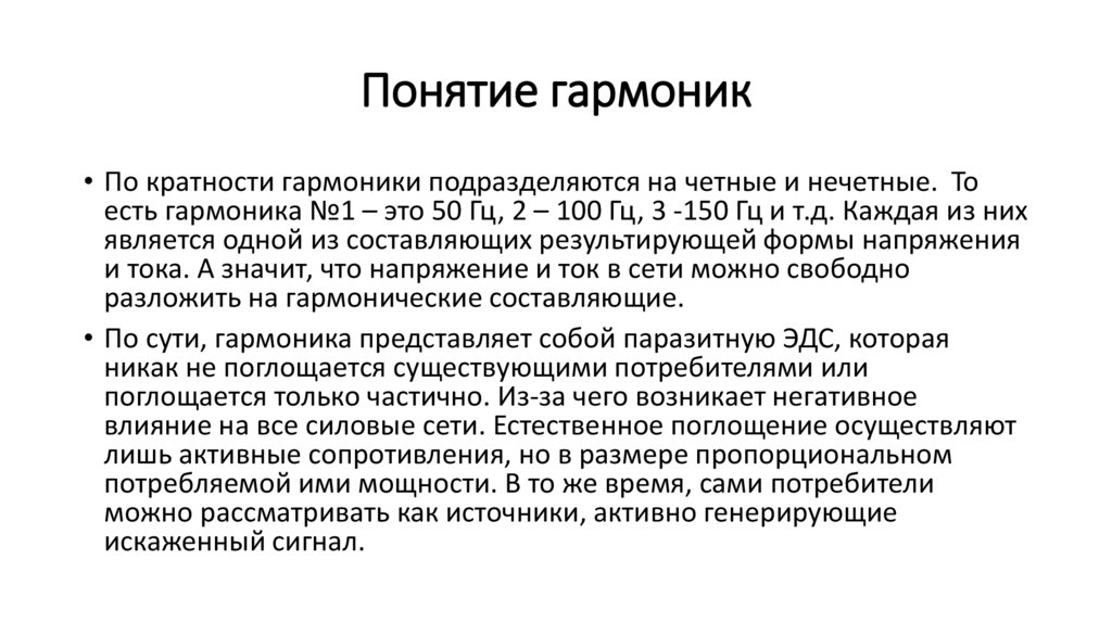 Понятие гармоник• По кратности гармоники подразделяются на четные и нечетные. То