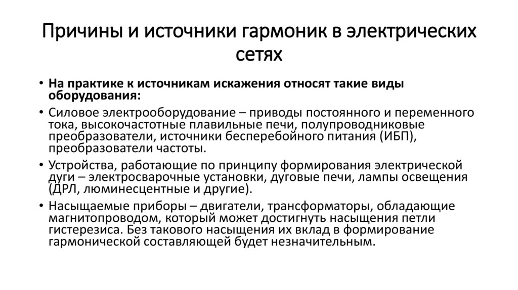 • Насыщаемые приборы – двигатели, трансформаторы, обладающие