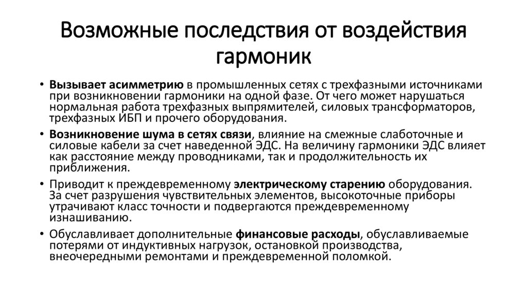 при возникновении гармоники на одной фазе. От чего может нарушаться
