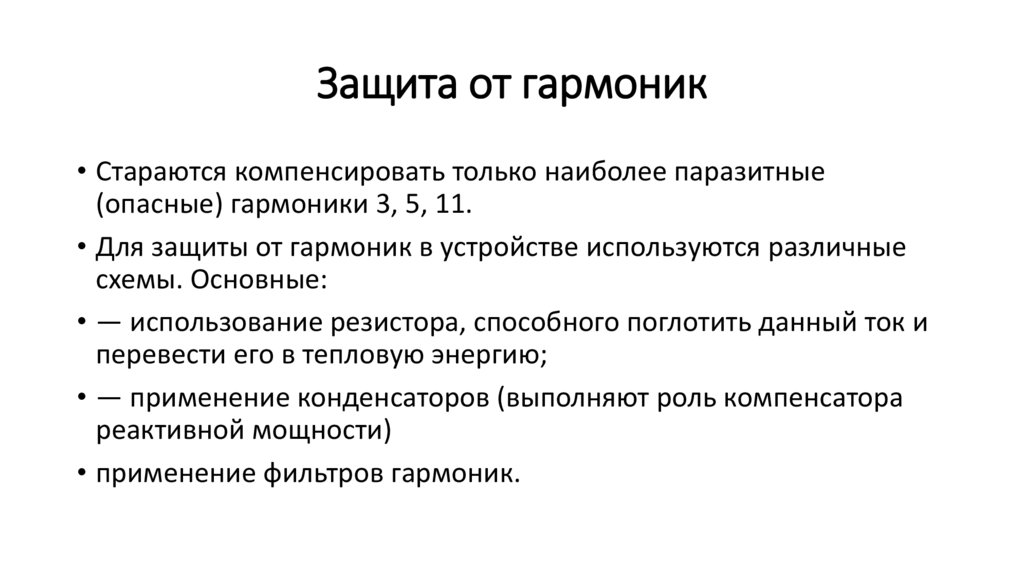 Защита от гармоник• Стараются компенсировать только наиболее паразитные