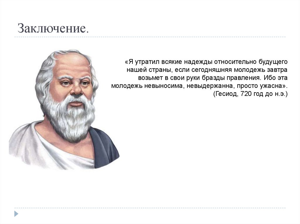 "Молодость относится к нам свысока ине желает внимать наставлениям