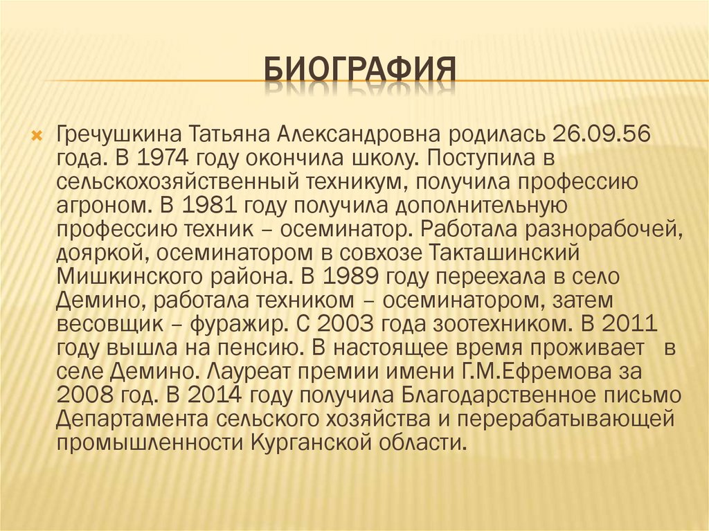 БИОГРАФИЯГречушкина Татьяна Александровна родилась 26.09.56