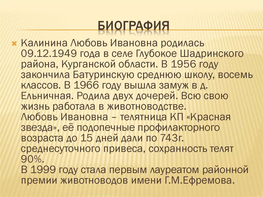 БИОГРАФИЯКалинина Любовь Ивановна родилась