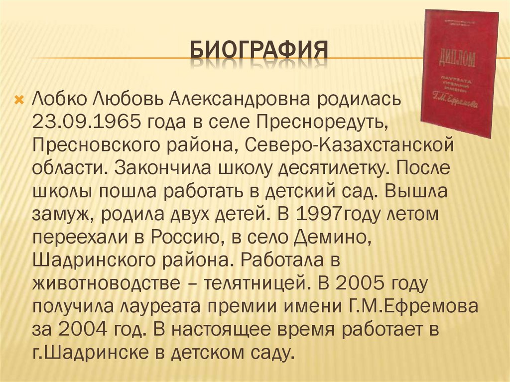 БИОГРАФИЯЛобко Любовь Александровна родилась