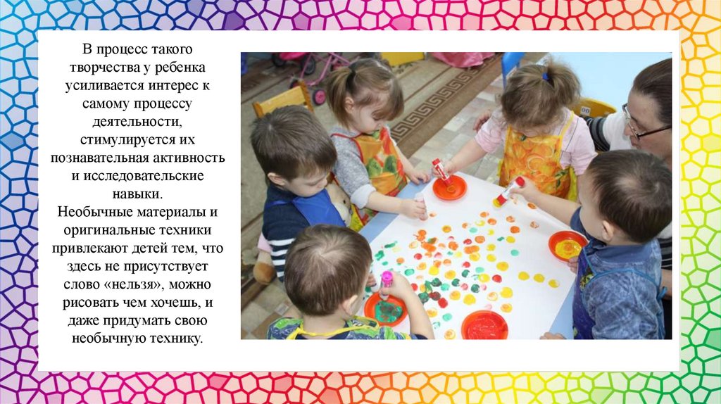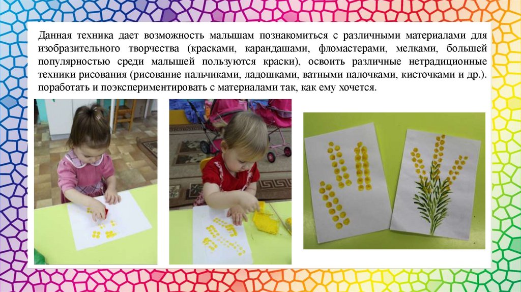 популярностью среди малышей пользуются краски), освоить различные нетрадиционные