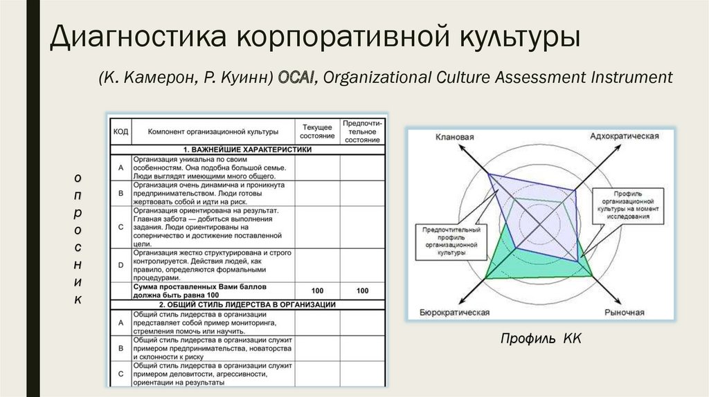 Диагностика корпоративной культуры(К. Камерон, Р. Куинн) OCAI, Organizational Culture Assessment Instrument