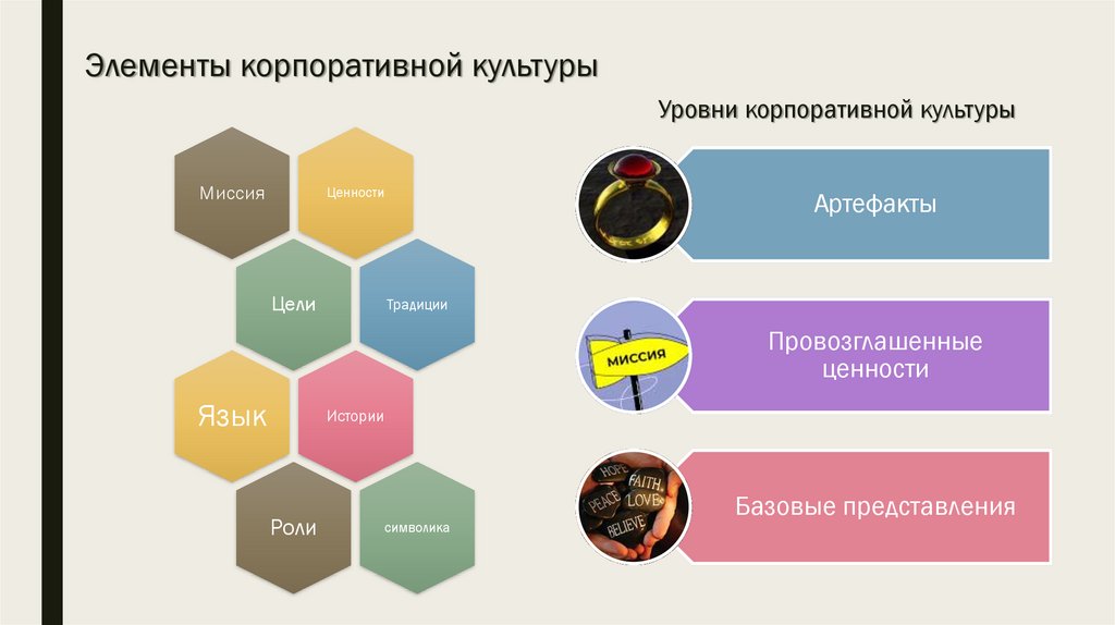 Элементы корпоративной культурыУровни корпоративной культуры