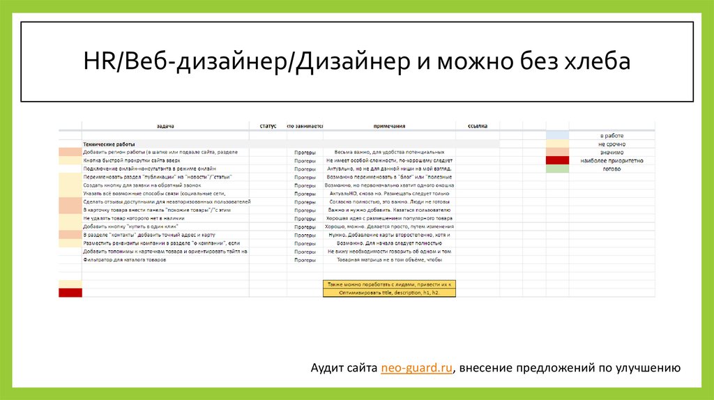 HR/Веб-дизайнер/Дизайнер и можно без хлебаАудит сайта neo-guard.ru, внесение предложений по улучшению