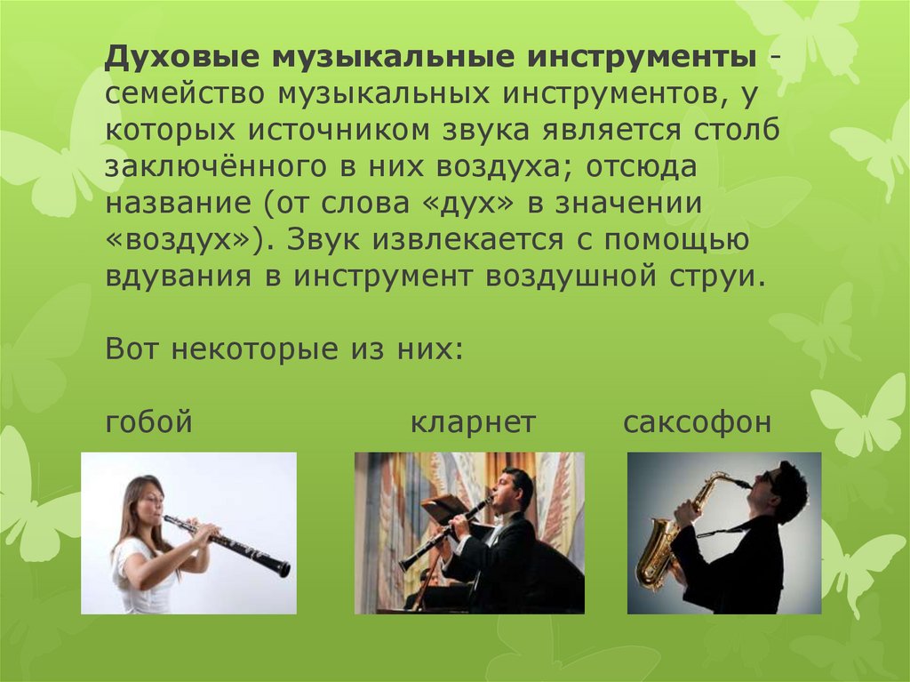 Духовые музыкальные инструменты семейство музыкальных инструментов, укоторых источником звука является столб