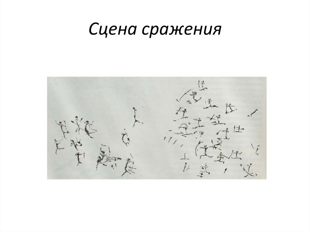 Рисунки в скальных навесах испанского Леванта. Сцена охоты на горного козла и группабегущих воинов