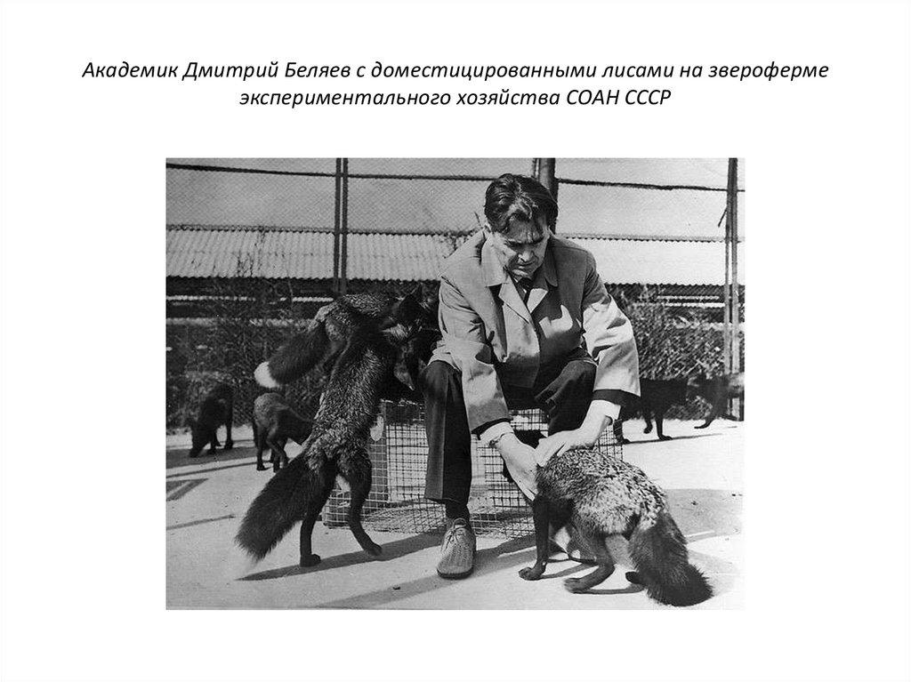 Академик Дмитрий Беляев с доместицированными лисами на зверофермеэкспериментального хозяйства СОАН СССР