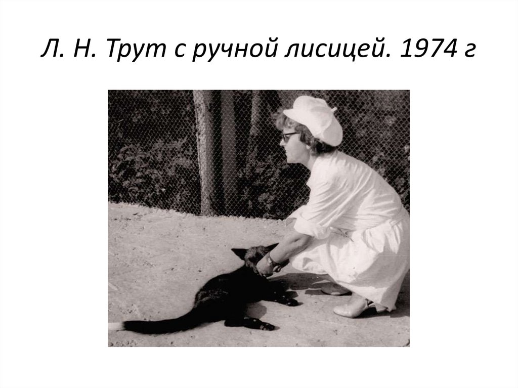 Л. Н. Трут с ручной лисицей. 1974 г7.