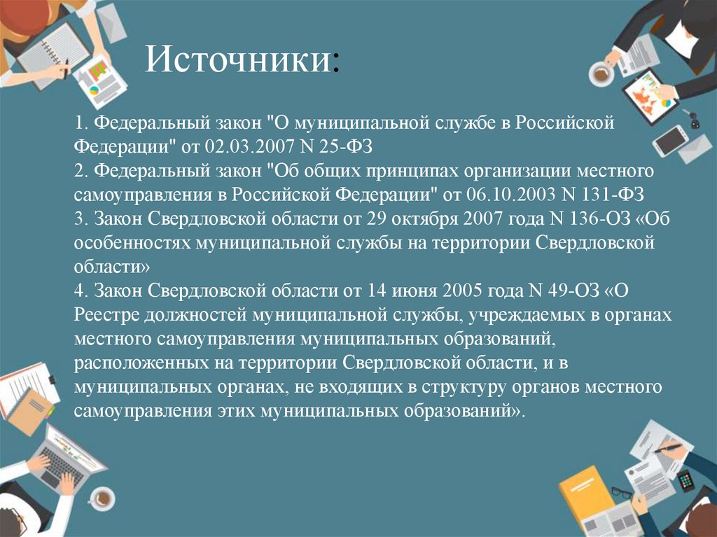 Источники:1. Федеральный закон "О муниципальной службе в Российской