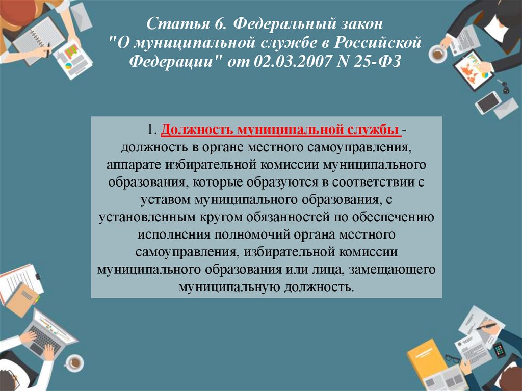 Статья 6. Федеральный закон"О муниципальной службе в Российской