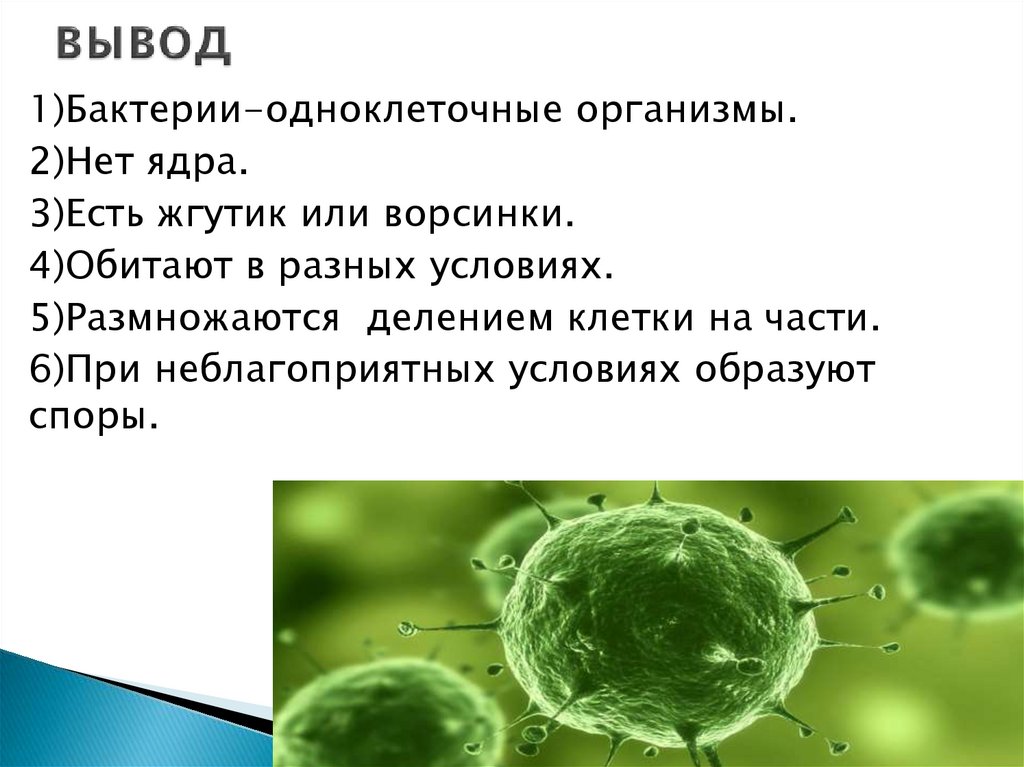 1)Бактерии-одноклеточные организмы.2)Нет ядра.