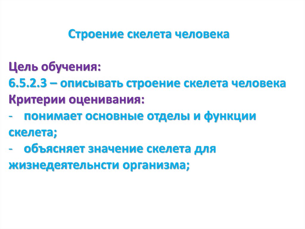 Строение скелета человека. Значение скелета для жизнедеятельности организма