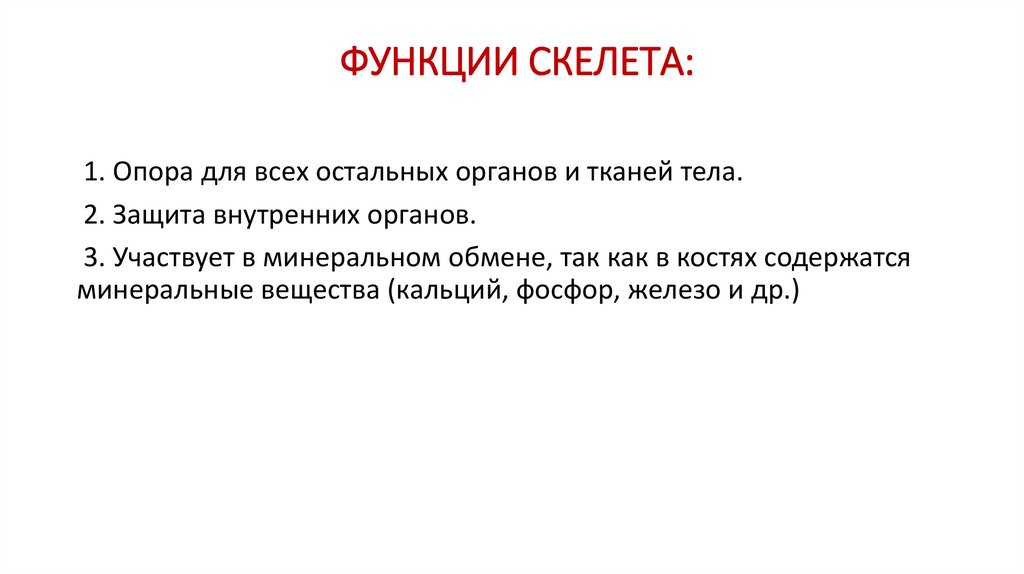 ФУНКЦИИ СКЕЛЕТА:1. Опора для всех остальных органов и тканей тела.