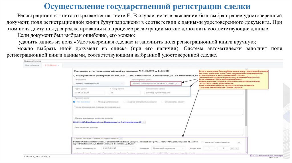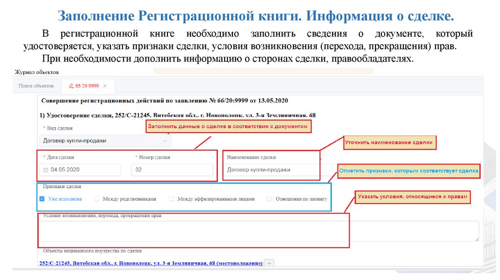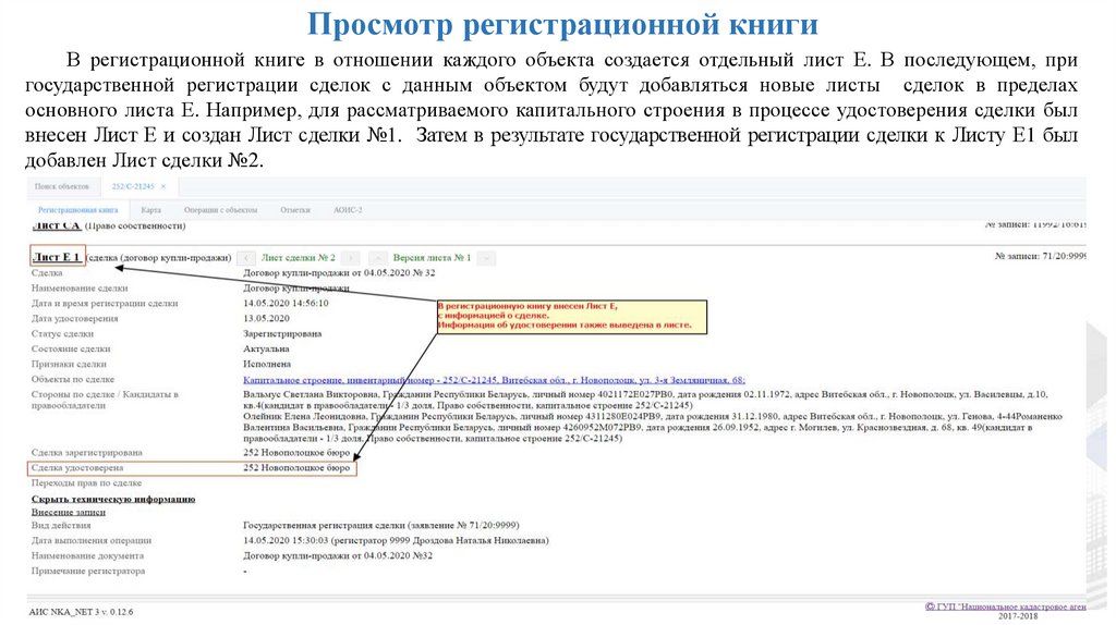 регистрации сделки. Вся информация включается в лист Е регистрационной книги.