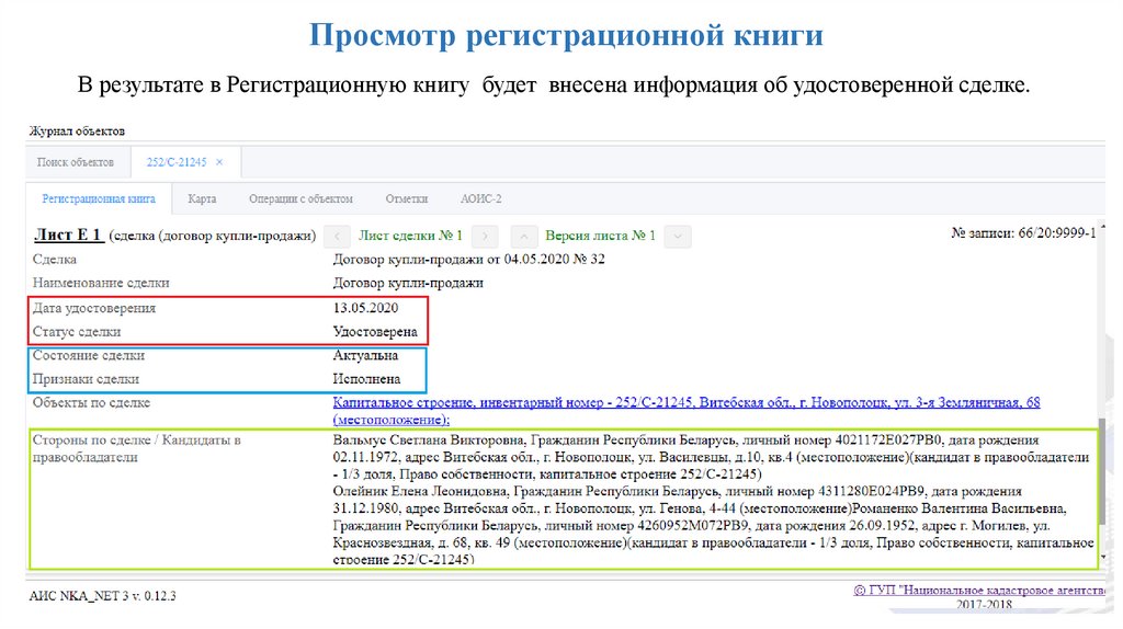 Просмотр регистрационной книгиВ результате в Регистрационную книгу будет внесена информация об удостоверенной сделке.