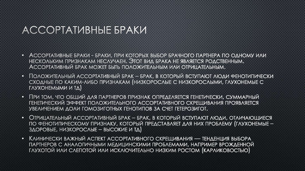 Инбредные, аутбредные, ассортативные браки