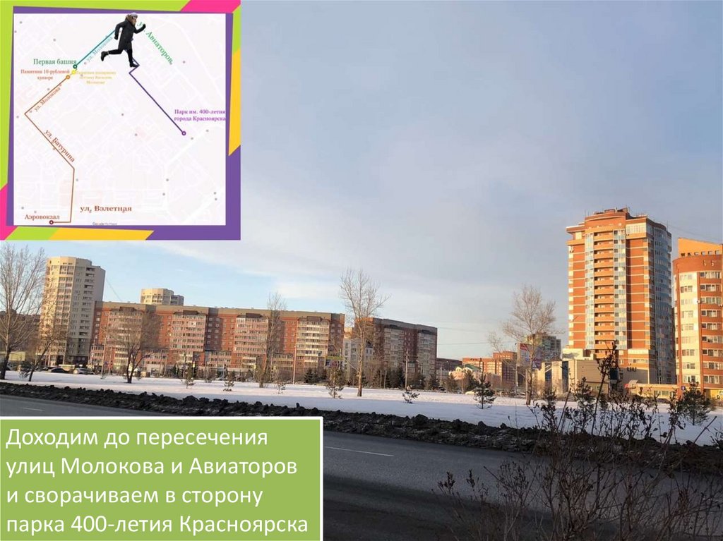 Доходим до пересеченияулиц Молокова и Авиаторов