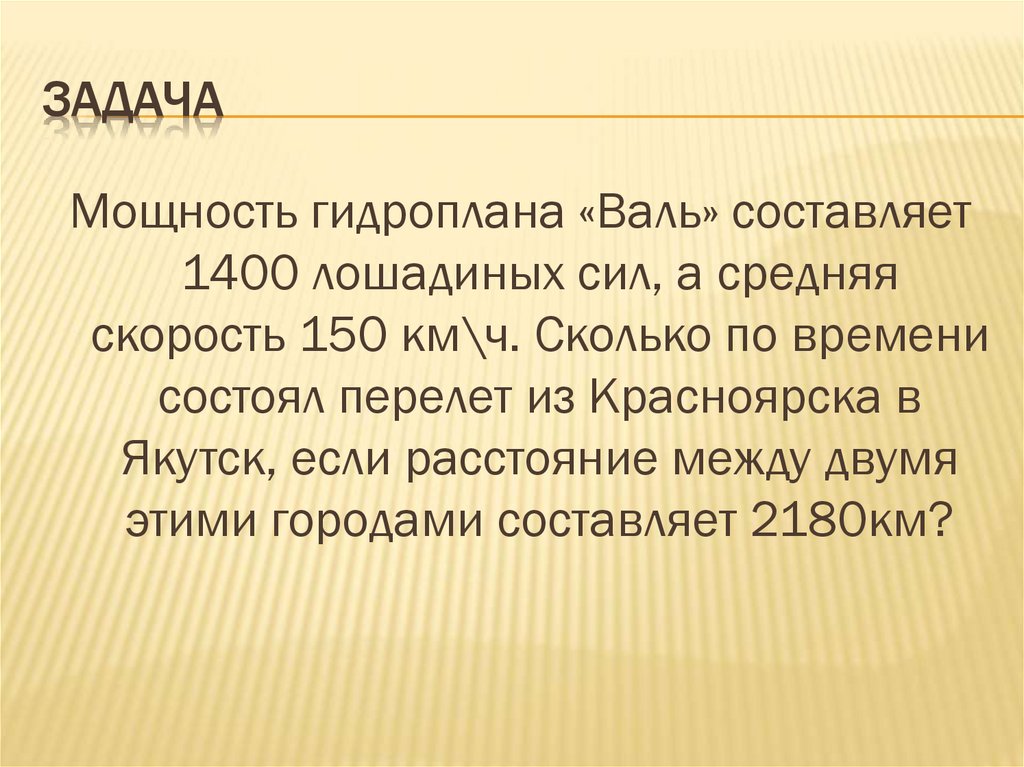 ЗАДАЧАМощность гидроплана «Валь» составляет