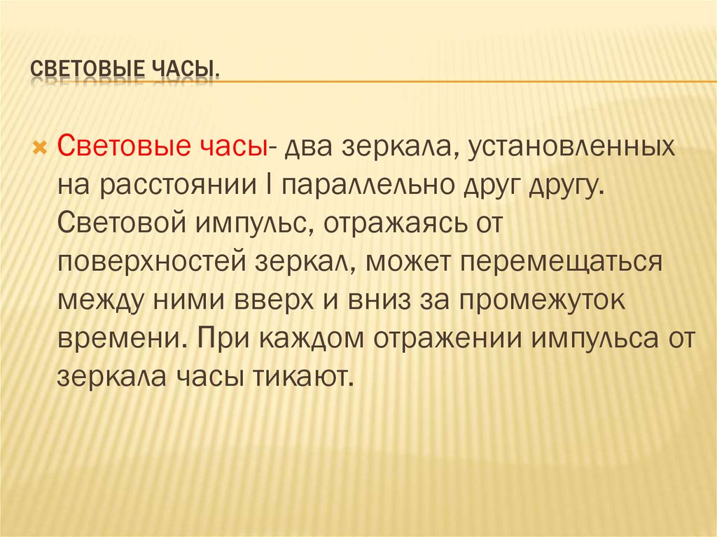 СВЕТОВЫЕ ЧАСЫ.Световые часы- два зеркала, установленных