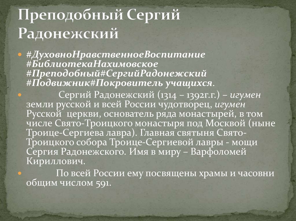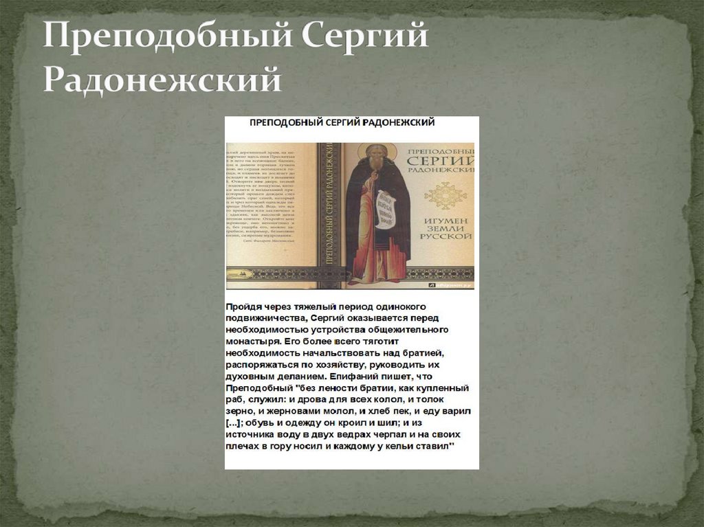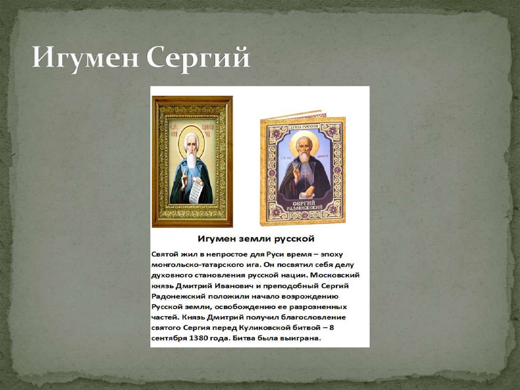 Сергий Радонежский (1314 – 1392г.г.) – игумен