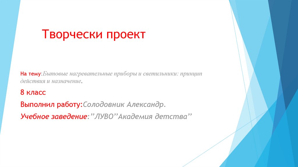 Творчески проектНа тему:Бытовые нагревательные приборы и светильники: принцип