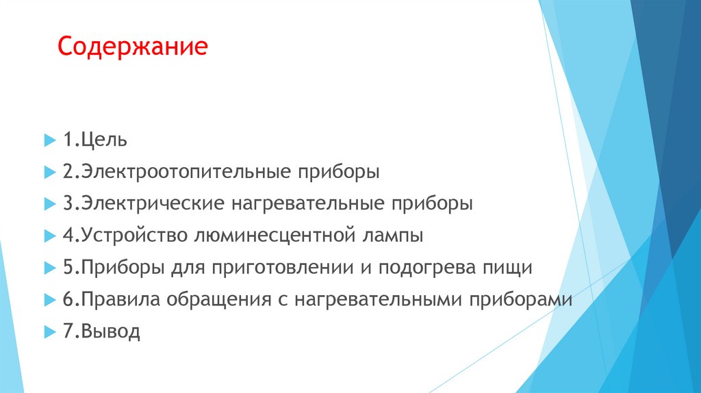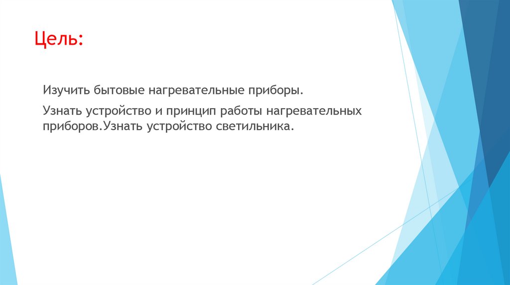 Бытовые нагревательные приборы и светильники: принцип действия и назначение. 8 класс