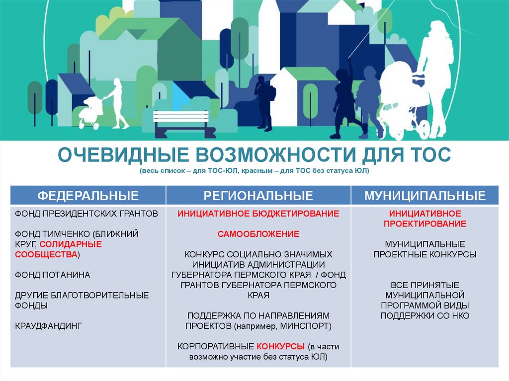 ОЧЕВИДНЫЕ ВОЗМОЖНОСТИ ДЛЯ ТОС(весь список – для ТОС-ЮЛ, красным – для ТОС без статуса ЮЛ)