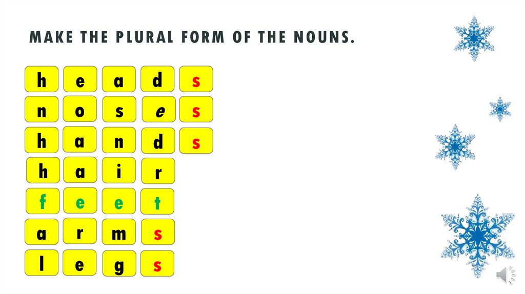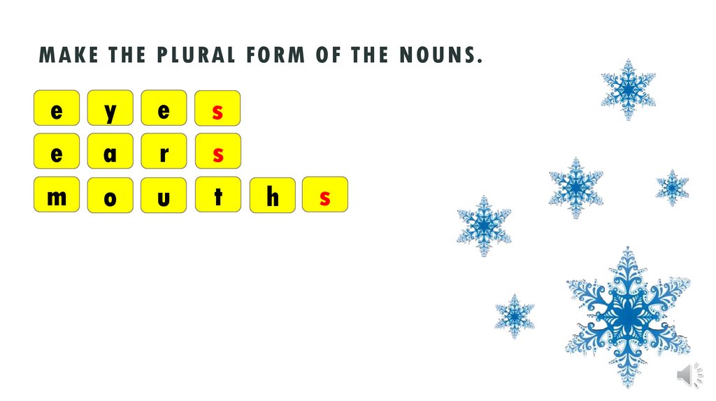MAKE THE PLURAL FORM OF THE NOUNS.h