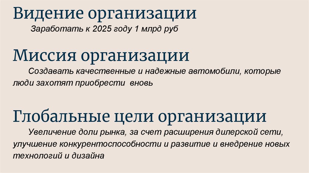 Видение организацииЗаработать к 2025 году 1 млрд руб