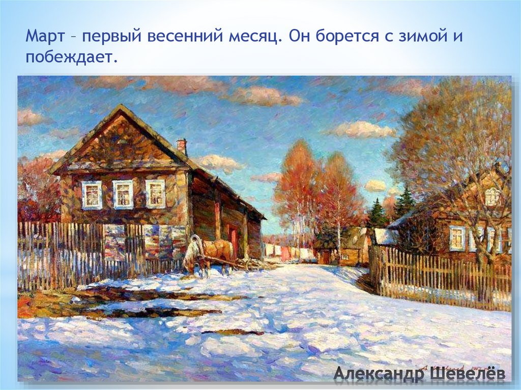 Март – первый весенний месяц. Он борется с зимой ипобеждает.