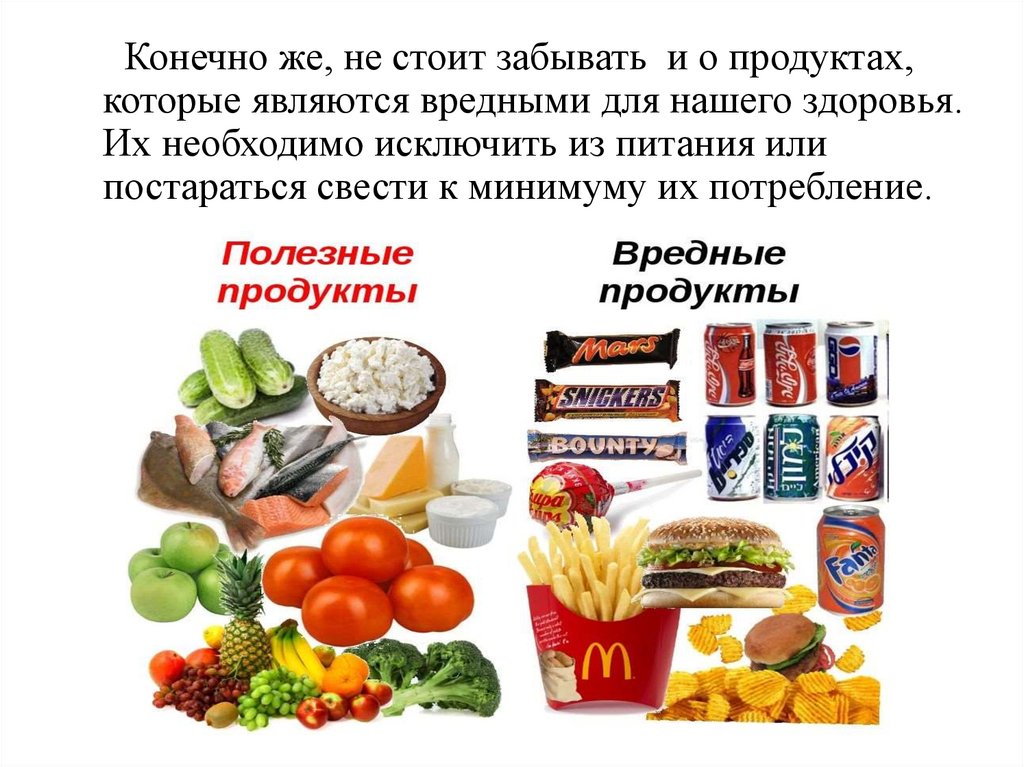 Конечно же, не стоит забывать и о продуктах,которые являются вредными для нашего здоровья.