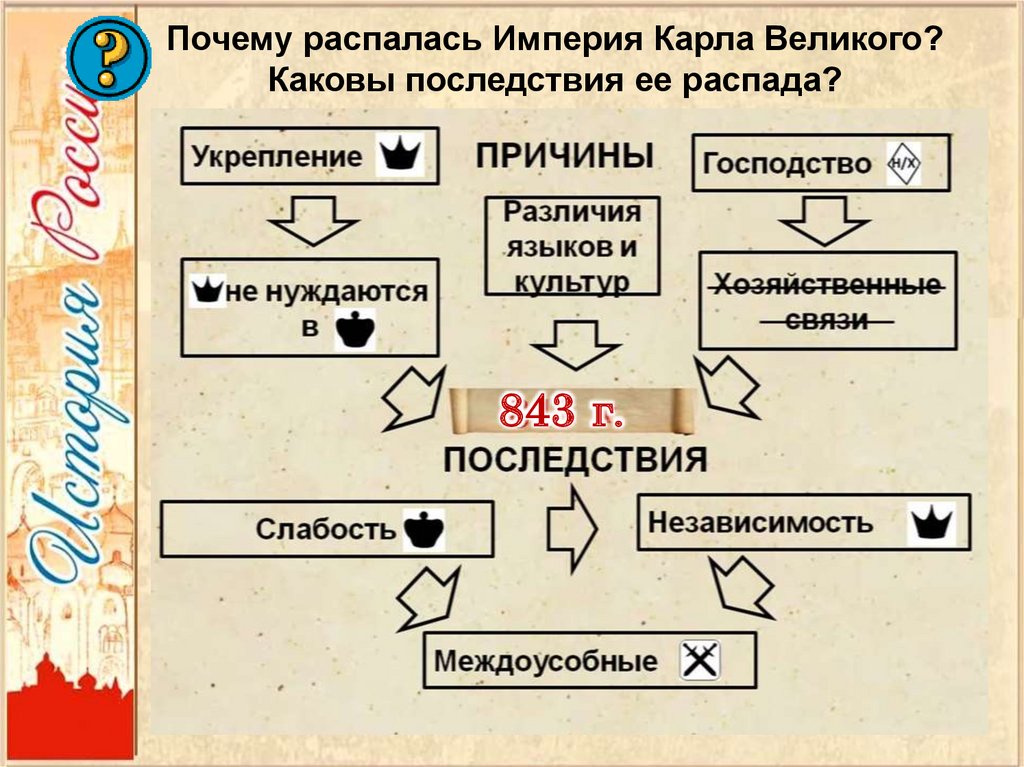 Почему распалась Империя Карла Великого?Каковы последствия ее распада?