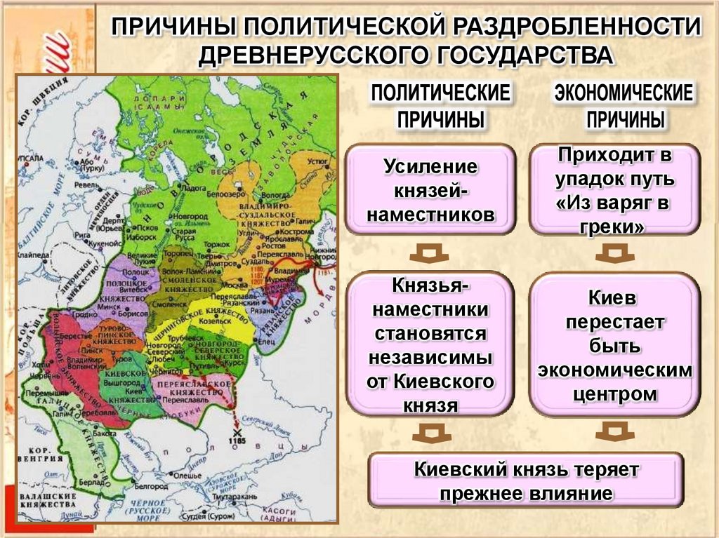 ПРИЧИНЫ ПОЛИТИЧЕСКОЙ РАЗДРОБЛЕННОСТИДРЕВНЕРУССКОГО ГОСУДАРСТВА