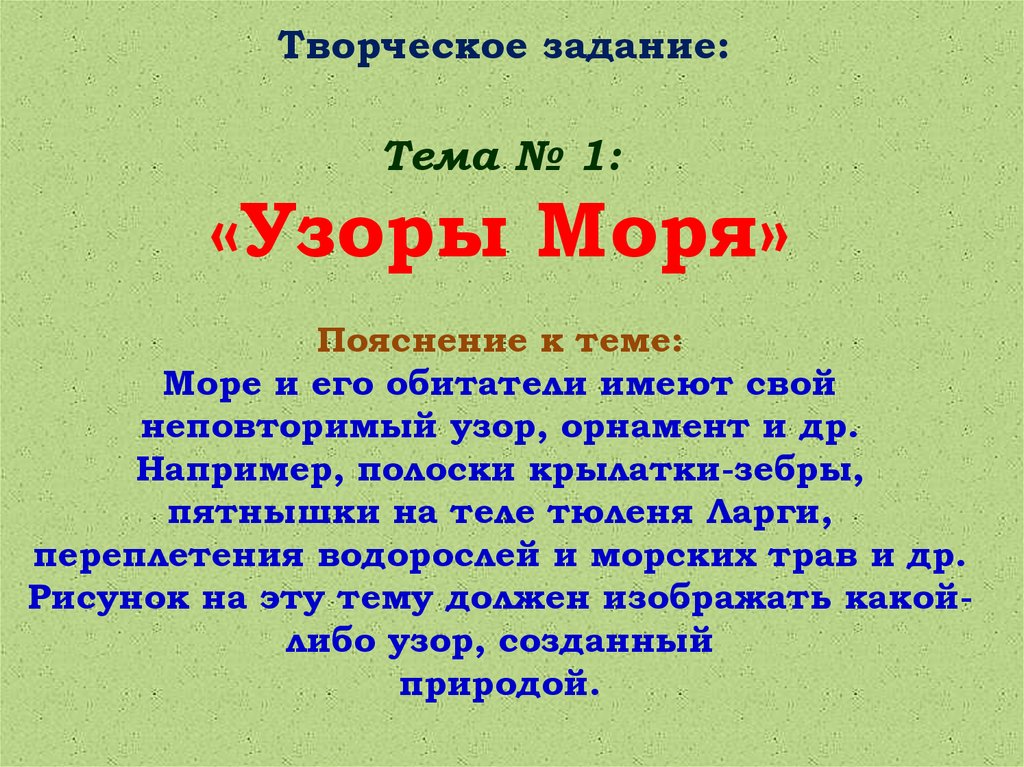 Рисунок на эту тему должен изображать какойлибо узор, созданный