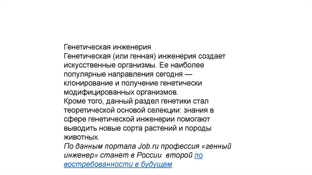 Генетическая инженерияГенетическая (или генная) инженерия создает