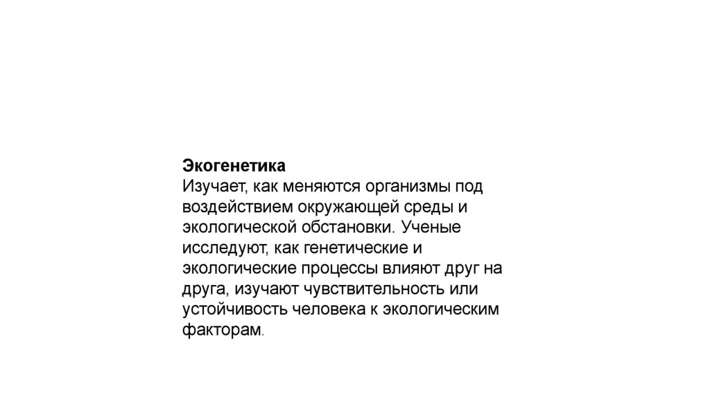Генетическая инженерия,экогенетика,медецинская гинетика.