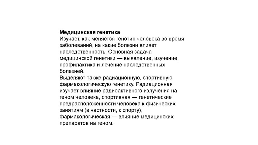 Медицинская генетикаИзучает, как меняется генотип человека во время