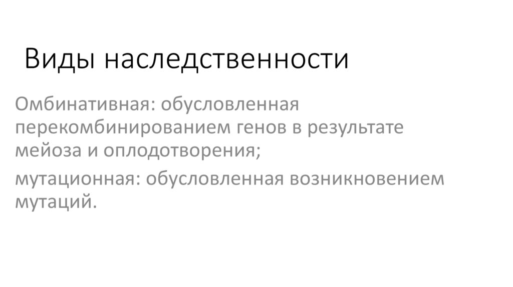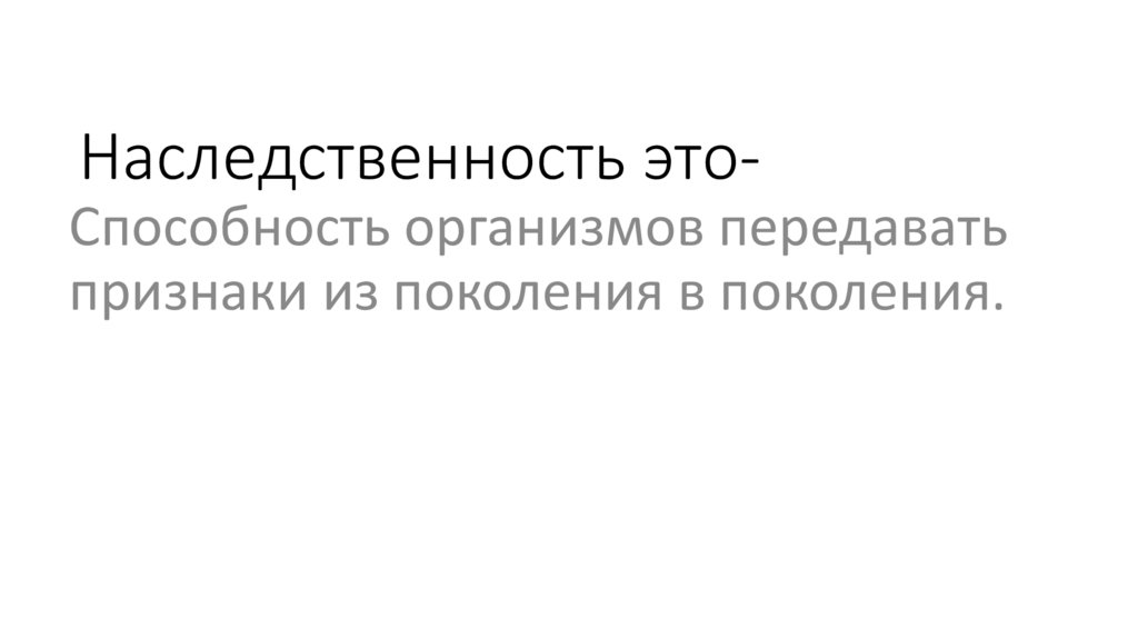 Наследственность этоСпособность организмов передаватьпризнаки из поколения в поколения.