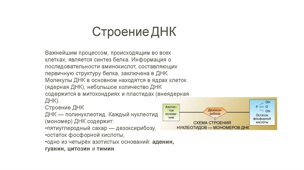 Строение ДНКВажнейшим процессом, происходящим во всех