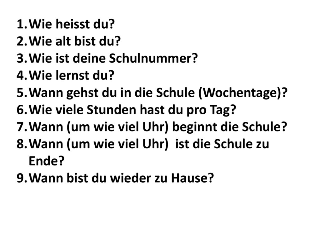 7.Wann (um wie viel Uhr) beginnt die Schule?