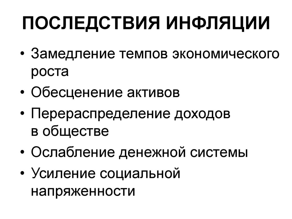 ПОСЛЕДСТВИЯ ИНФЛЯЦИИ• Замедление темпов экономического