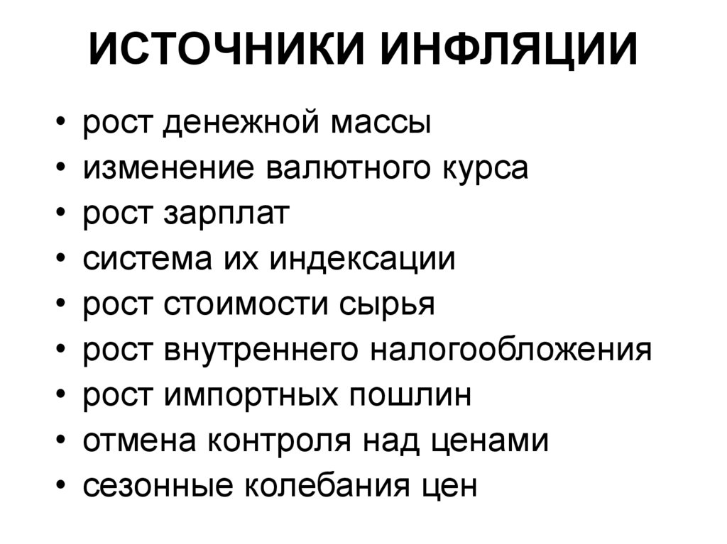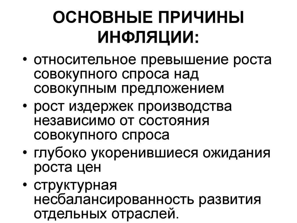 ОСНОВНЫЕ ПРИЧИНЫИНФЛЯЦИИ:
